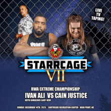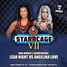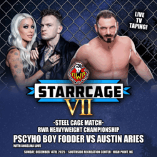 RWA: Starrcage VII - The biggest event of the year returns to High Point, NC on Sunday, December 14th and we are bringing back all the pain and chaos that happens Inside the Steel Cage!!! Featuring the debut of WWE and TNA Superstar and 5 Time World Heavyweight Champion Austin Aries, NWA Star Psycho Boy Fodder, WCW Legend Lodi, "Survivor" reality TV Show Legend Jonny Fairplay, 6 Time TNA Knockouts World Champion Angelina Love, the Dark Child Chance Prophet, and much, much more!!!!! Tickets start at just $10 and kids 10 and under get in free!!! Southside Recreation Center, 401 Taylor Avenue, High Point, NC!!!!!