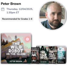 Author of The Wild Robot series, Peter Brown, will be speaking, reading, and answering questions (sent in early) during this Zoom event.