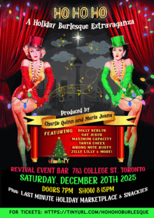Gather your friends for Torontos sexiest, cheekiest holiday burlesque show. From dancing gingerbread women to dominatrix Mrs. Claus, tantrums, eggnog, whips, Gay Jesus, kawaii, and more are stripping, shimmying, and high-kicking their way into your festive fantasies.