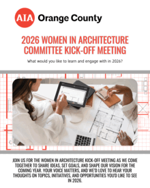Join us for the Women in Architecture Kick-Off Meeting as we come together to share ideas, set goals, and shape our vision for the coming year. Your voice matters, and wed love to hear your thoughts on topics, initiatives, and opportunities you'd like to see in 2026.