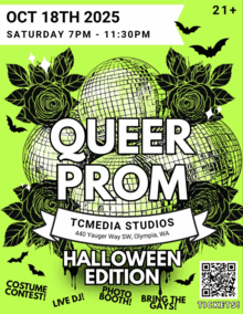 Get ready, OlympiaQueer Prom is here, and it's going to be legendary! On October 18th, from 7:00 PM to 10:30 PM at TCMedia Studios, we are bringing you the prom night you always deserved. Whether you missed out on your high school prom or want a chance to experience it as your true, authentic self, this event is for you.