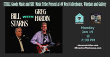 Bill Starks and Greg Hardin January 19, 2026 @ 7;30 PM 49 West Coffeehouse, Winebar, and Gallery 7 PM Doors Online Tickets $20 - Door $23 https://billstarksandgreghardin.bpt.me