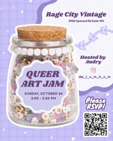DONATIONS: I'm just one person supplying these events. Most of the stuff is from my own closet, and I love sharing! However, sometimes I don't have enough for everyone. If you'd like to bring some spare supplies to the event for others to use, please reach out and ask how you can help. Help is always super appreciated! This way everyone can feel more included in the jam, and gives us the opportunity to set up more seats next time. Venmo donations are also accepted if that's what you prefer. My Venmo is @p1umbum. Feel free to message me via email or Instagram if you have any questions at all~