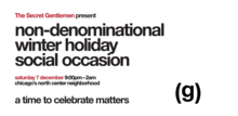 So ready your finest holiday finery, gird your tolerances, practice your celebratory ass-shaking routines, and join us at an as-yet-undisclosed location in Chicago's North Center neighborhood close to Western and Montrose.
