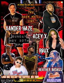 Join Ms Honey Tea Nov 30th as they MC a Live Artist Showcase Featuring Original Music By Xander Haze, Acey X, Roux, Heather Badass, Lava Boi, Deejay the Rapper, and Big Dom! These Artists Have Performed at Music Festivals Nationwide and You Can Check out Their Music on Major Streaming Platforms Including Apple Music, Spotify, and Youtube Music. The Rock Motel is a Long Running, Music Variety Show; Showcasing a Wide range of Acts Over the the Course of 3 Years Produced By Ms Honey Tea, Local Club Kid Who Has Headlined Multiple Performing Festivals(Pride,Burlesque, Art Shows), and Has Performed in Clubs all Over Arizona, California and Las Vegas About The Venue: The Rock is a Staple within the LGBTQ Community, Located on Melrose Street, It's a Neighborhood Bar with a Unique Layout and a includes a Show Lounge Inside The Bar that Is Used for Drag Show, Comedy Shows, Karaoke, Pageants, Club Meetings. Equipped With Amazing Sound, and Custom Lights, Enjoy Concerts in an Intimate Setting Unlike any other Venue