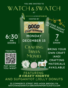 Date: 12/15/25 Day: Monday Time: 7pm (doors at 6:30pm) Location: Green Lung Studio 22 Commerce Street, Brooklyn NY 11231 (@greenlungstudio on Instagram) Produced by: Good Crafternoon (@goodcrafternoon.bk on Instagram)