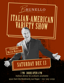 Martin Mancuso LiveComedy Singing Saxophone An Evening of Entertainment & Authentic Italian CuisineExperience an intimate and unforgettable Las Vegas evening with Martin Mancuso, a true one-man variety performer blending comedy, live singing, and soulful saxophone into a seamless, high-energy show.With effortless charm and sharp comedic timing, Mancuso guides the audience through a night of laughter, music, and storytellingmoving fluidly from stand-up comedy to classic songs and live saxophone performances. The show is personal, engaging, and dynamic, creating the feeling of a private performance rather than a traditional stage show.Guests may also order an authentic Italian dinner, turning the evening into a full sensory experiencegreat food, great music, and great comedy, all in one place. Whether youre planning a date night, a celebration, or simply looking for a refined yet fun Las Vegas experience, this show delivers entertainment with warmth, personality, and style. Live comedy & storytelling Singing & saxophone performance Authentic Italian dinner available Intimate, classic Las Vegas vibeA perfect night out for locals and visitors who appreciate great music, genuine laughs, and exceptional Italian cuisine.