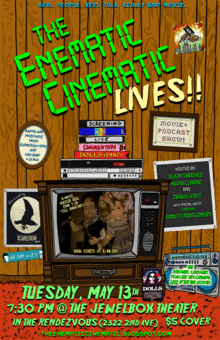 The Enematic Cinematic LIVES brings you the awesomely fun experience of watching a shitty movie with friends, strangers and booze, combined with a live taping of The Enematic Cinematic Podcast starring you as a live audience person and featuring some of the funniest comics/performers and general randoms off the street in town! The movies will always be bad, but the times will always be good! COME for the horribly shitty movie w/comedic commentary and STAY for The Enematic Cinematic Podcast taping LIVE!