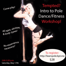 We will do a sensual warm up to heat up both your body and soul! We will raise our heart rate briefly, do strengthening exercises based on sassy stripper moves, then we'll get to work on learning pole. You will learn in a comfortable, judgement free environment so just COME AS YOU ARE. ALL WOMEN are encouraged regardless of age, ability or body type. You don't need to be strong to do pole. You get strong doing pole!