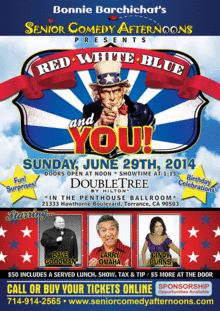 BONNIE BARCHICHAT'S SENIOR COMEDY AFTERNOONS-- RED, WHITE, BLUE & YOU!!