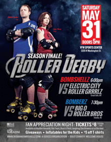 It's a bird It's a plane It's Bisman Bombshellz Roller Derby! The Bisman Bombshellz roller derby league is hosting its season finale double header Fan Appreciation Night! Get to the VFW Sports Center, located at 1200 N Washington St., on May 31, 2014 for an action packed evening. The BisMan Bombshellz take on the Electric City Roller Grrlz from Great Falls, Montana and the BisMan Bomberz battle the Big O Roller Bros from Omaha, Nebraska. Doors open at 5pm, action starts at 6pm! In addition to the roller derby action, there will be giveaways, inflatables for the kids, and $5 off t-shirts!