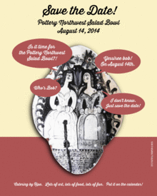 The Salad Bowl is THE big fund-raising event at Pottery Northwest that we do annually to support a wide variety of events throughout the year like our resident artist's shows and curated exhibitions that are free and open to the public. This year, we'll also be supporting our Artists in Residency program by raising money to cover studio fees for our artists in residence as well as some of their special project expenses.