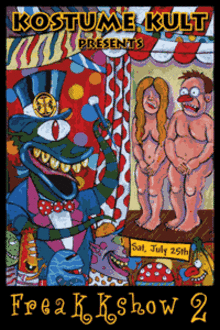 PARICIPATE!: Be a sideshow? Got freakky art? We are looking for circusy or evolutionary artforms and any sideshow attraction that you might want to create... You can register your piece if you need space or just bring it that night! Step right this way (RSVP at) ----> kult@kostumekult.com