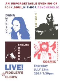 Dana McKeon. Shelita Burke. Kosmic Troubadour. Ventru. Live at Fiddler's Elbow in London, UK. http://www.thefiddlerselbow.co.uk/gigguide.php