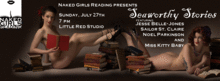 Be they piratical, nautical, or mystical in nature, the ocean is a treasure trove of wet and wild tales! This summer, Naked Girls Reading will anchor its next nude literary salon in the mysteries of the deep with "Seaworthy Stories" on July 27 at The Little Red Studio! Regular readers naiad Jesse Belle-Jones and the thematically-named Sailor St. Claire will make a splash with selections about pirates, seafarers, boats, mermaids, and a host of other oceanic occupants. The Naked Girls will be joined by cephalopod-loving Noel Parkinson and deckhand-by-day, showgirl-by-night Miss Kitty Baby in reading ship-shape stories of the sea. Sponsored by Sinner Saint Burlesque, "Seaworthy Stories" will take place at The Little Red Studio (3200 Airport Way S.) on Sunday, July 27 at 7 pm. Our space is limited, so we encourage purchasing tickets in advance.
