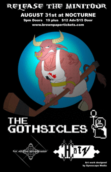 THE GOTHSICLES http://www.thegothsicles.com/ In recent years, Chicago's ultrasweaty industrial dance dorkstorm, THE GOTHSICLES, have played some of the most talked about live shows at some of the most premiere industrial music festivals around the globe. Compounding a ruinous mix of crass humor, video games and geek culture with an unapologetic EBM affinity, The Gothsicles' 2011 release "Industrialites & Magic" (WTII Records) reached the #1 spot on Amazon.com for "Most Downloaded" in the "Goth & Industrial" category.