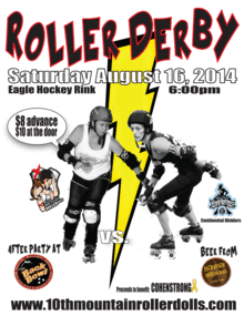 Come on down to the Eagle Pool & Ice Rink for some derby action Saturday August 16th at 6pm. The Ark Valley High Rollers team, Continental Dividers will take on the 10th Mountaineers in a knockdown drag out event.