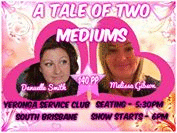 Join Australia's very own Butterfly Whisperer- Natural Born Psychic Medium Melissa Gibson and Medium and Clairvoyant Danuelle Smith of 'Into the light with Danuelle'.These lovely ladies have demonstrated the existing LIFE after death on earth in previous areas and thoroughly enjoy the combination of energy they bring to the stage. Melissa and Danuelle have both worked alongside and learned from the most prestigious and mature Psychic Mediums in the world and have worked extensively to ensure a heartfelt and beautiful insight into the Spirit World. An event not to be MISSED! Every attendee will also receive a special gift and lucky door prize will be offered!