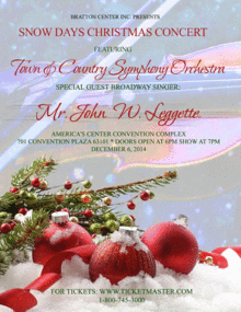 Bratton Center Inc., presents "Snow Days, Christmas Concert". Featuring the Town & Country Symphony Orchestra