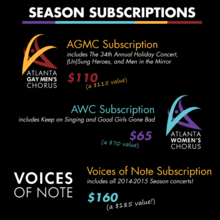Enroll as a season subscriber today to receive the best value on premium seating at Voices of Note performances. With three subscription options to choose from, purchasing a season ticket is simply the best and easiest way to experience the inspiring talents of the Atlanta Gay Men's Chorus and Atlanta Women's Chorus.