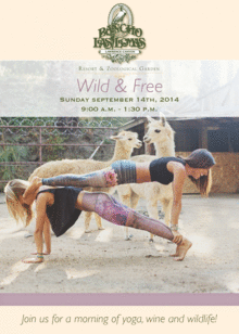 Come start your morning with a 90 minute vinyasa yoga class that includes restorative and reiki lead by Lacey Calvert and Marrissa Allen, then enjoy some wine, live music and refreshments and a stroll through the Rancho Las Lomas Wildlife Foundation.