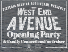 Join us on Sunday, September 7th from 11:30am to 3:00pm as we help unveil the West End of Burlingame Avenue with great food, beer and wine while raising money for Family Connections, a local non-profit providing education resources for low income families on the Peninsula. And in case we haven't been properly introduced, you'll have the opportunity to tour our beautiful restaurant and join us for a ribbon cutting ceremony. In addition to ticket sales we'll also be raising money for Family Connections with a silent auction full of unique experiences and prizes for you to bid on. We can't wait to see you!