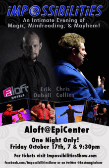 You don't want to miss the opportunity to see two world class performers amaze and astound you; do not miss: IMPOSSIBILITIES!