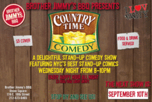 Country Time Comedy is a monthly comedy show snuggled in the heart of a quaint little BBQ restaurant in Union Square. It features the best comedians in all of NYC/the world, and it only costs $5! There is a full service waitress, and drink specials include $3 bud/bud lights. It is always fun, always hilarious, and most importantly, it is always full of tremendous people. Here's this show's lineup. It's ridiculousin the best way possible...