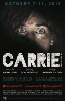 Here are the details of our 2014/15 Season: CARRIE: THE MUSICAL October 8-25, 2014 Jericho Arts Centre Music by Michael Gore Lyrics by Dean Pitchford Book by Lawrence D. Cohen Based on the novel by Stephen King With Permission by Rodgers & Hammerstein Organization