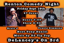 RENTON COMEDY NIGHT @ DeLancey's on 3rd! BRETT J & TRAVIS "Big Funny" SIMMONS