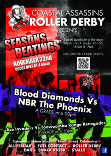See the Coastal Assassins A grade BLOOD DIAMONDS vs the Northern Brisbane Rollers TEAM PHOENIX from 6pm