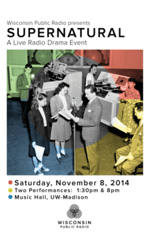 Experience the golden age of radio with Supernatural, a live radio drama event from Wisconsin Public Radio. Norman Gilliland hosts this performance by the 9XM Players with music by the Kat Trio in historic Music Hall on the UW-Madison campus.