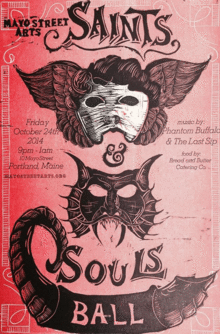 Come one come all to the Saints and Souls Ball! Friday, Oct 24th, 9-1 at Mayo Street Arts. Costume up like it's Haunted New Orleans in 1920 and expect great food, DJ's, atmosphere, costume Prizes, a Soul Lounge, a fortune teller, and a dance party in Poseidon's Den.