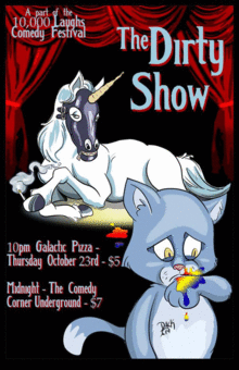 The 10,000 Laughs Comedy Festival proudly presents--well, presents, anyway--the Dirty Show, 90 minutes of bad words, evil thoughts and dubious intentions. No subject is too dark, too sensitive or too soon. Whether it's race, religion, politics, disability, sexual orientation or lack thereof, we're not afraid to go there. Basically, we offend everyone but the Jews.