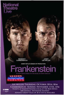 National Theatre Live, Frankenstein Lee Miller- Thursday, October 30th 8:00pm Cumberbatch-Sunday, November 9th 1:00pm