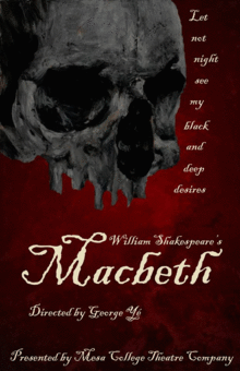The alluring nature of providence drives Macbeth's appetite for power, and awakens his ambition to become King of Scotland. Prophecies and malicious deeds ultimately lead to murder, paranoia, and a soul soiled with rage. Don't miss this unique production of Shakespeare's greatest tragedies staged by Mesa College Theatre Company.
