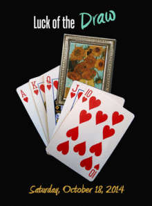 At 7:30 pm, guest emcee Victoria Wyeth will begin drawing each ticket holder's playing card at random. When your card is called, you will have one minute to make your selection from a variety of artwork donated by local artists. In addition to the Luck of the Draw, there will also be a live auction of selected artwork during the evening.
