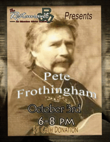 The Restaurant at Rhodes River Ranch is hosting Pete Frothingham! Come out for the show from 6pm-8pm and enjoy dinner. Reservations recommended.