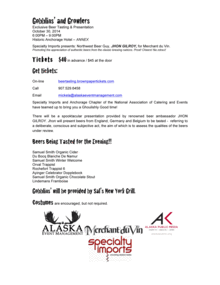 Get tickets: On-line wwww.beertasting.brownpapertickets.com Call 907.529.6458 Email mickela@alaskaeventmanagement.com