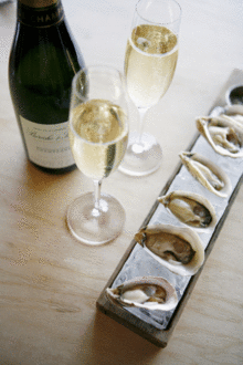 Oyster inspired cocktails with green tea, cucumber or tomato water for $8, and a selection of whites to pair with oysters for $6 a glass also available.