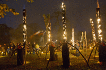 The Fire Garden is a series of fiery sculptures, specially created by Walk the Plank. The Fire Garden creates a glowing landscape which the audience are invited to come and explore.
