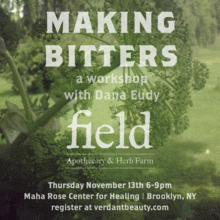 On Thursday November 13th, Field Apothecary will be teaming up on a workshop with Verdant Beauty. Come make your very own custom bitters and learn more about the healthy benefits of digesting well!