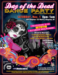 Day of the Dead Dance Party a benefit event to help raise money for Circle of Friends for the Dying, a non-profit organization chartered to bring compassionate, competent end-of-life care to the dying and their families.