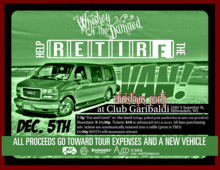 Event Details Proceeds from this event going towards getting a new tour vehicle so Whiskey of the Damned can stay on the road and continue to entertain their fans $10 advance, $12 at the door Anyone who purchases an advance ticket through brown paper ticket will automatically be entered into a raffle. The prize is TBD.it will AWESOME 7-9pm Join Whiskey of the Damned for an "Eat and Greet" prior to the show. Wings, Pulled Pork Sliders and tater tots provided! 9-11:30pm Showtime 11:30pm Raffle winner will be announced