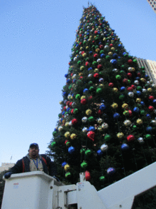 In November, watch workers in Hermann Square Park test the little white lights on oak trees and prepare for the arrival of the City's Holiday Tree.