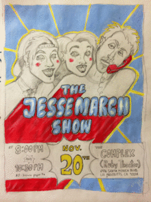 The Jesse March Show is an evening of unparalleled professionalism!  For days now, Jesse March himself has been working hard to bring you the finest and newest in variety entertainment, with acts from all over his social circle. It's fast, it's raw, and it's only an hour! What could be worse? And the best part is, it's only eight bucks. That's more than the price of one cup of coffee!