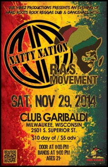 Natty Nation & RAS Movement Club Garibaldi 2501 S Superior St, Milwaukee, WI (414) 483-6335 http://clubgaribaldi.com Tickets $5 adv / $10 dos Ages 21+