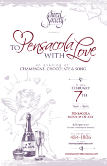 The Choral Society of Pensacola invites you to enjoy To Pensacola with Love: An evening of champagne, chocolate, and song.