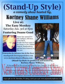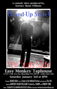 (Stand-Up Style) is a monthly live comedy show that features some of the best national touring headliners. This is the normal comedy show that is full of hack comics. That turn your one night out, into a 3 hour marathon of unfunny; which ends up being more depressing than entertaining. Leaving you thinking, "I should have stayed home and watched Seinfeld reruns." (Stand-Up Style) is produced and hosted by, Kortney Shane Williams, and first the first time he's bring the show to Easy Monkey Taphouse Saturday, Jan 3rd for a New Years Celebration.