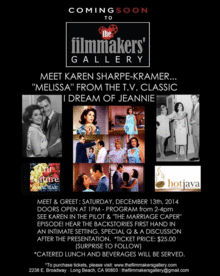 Meet & Greet: Saturday, December 13th, 2014 Doors open at 1pm - Program from 2-4pm See Karen in the pilot and "The Marriage Caper" episode from Season 1 of the hit T.V. series, "I DREAM OF JEANNIE"! Hear the backstories first hand in an intimate setting. Special Q & A discussion after the presentation. (Shhhhhhhhhhhhh...Surprise to follow!)